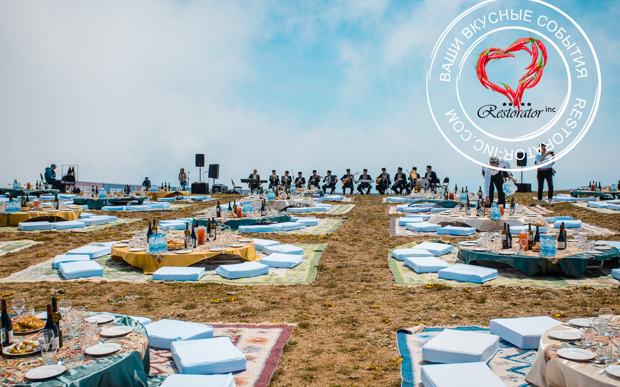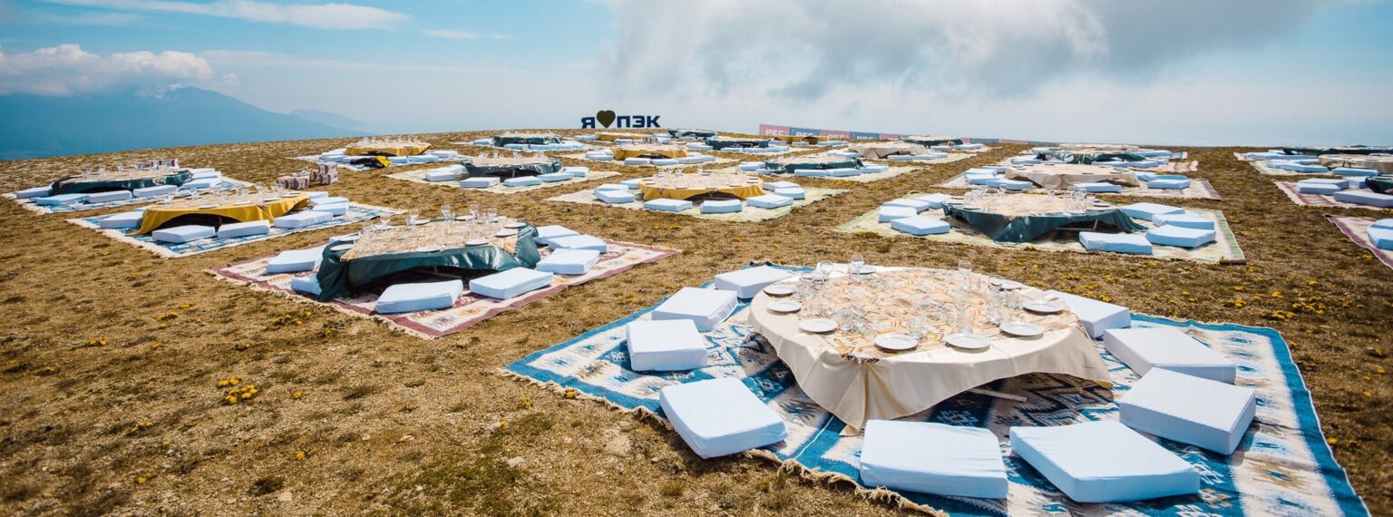 Май 2019, корпоративный завтрак в национальном Крымско-татарском стиле для компании ПЭК, локация плато на вершине Айпетри.